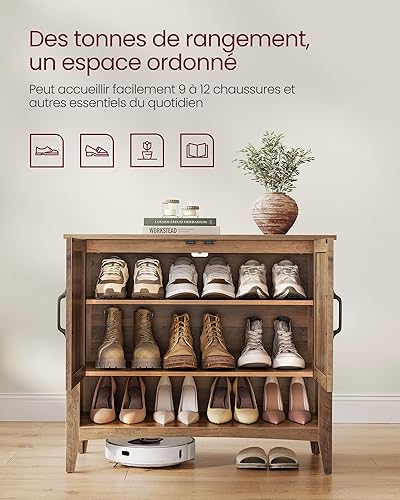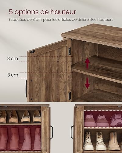 SONGMICS VASAGLE Meuble, Organisateur à 3 Niveaux, Chaussures, Style Campagne Moderne, Armoire Indépendante avec Étagère Réglable, 35 x 80 x 70 cm, Entrée, Blanc Rustique LBC039W01, 120L cm