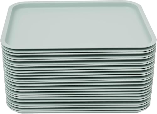 fennnds Lot de 24 plateaux de service rectangulaires en plastique kaki pour cuisines, hôtels, restaurants, snacks, écoles, cafétérias, 36 x 27 x 2 cm (L x l x H)