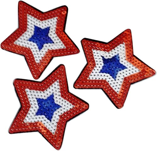 B2SEE Ecussons/Patches Etoiles Paillettes thermocollant/a Coudre Bleue Blanc Rouge fête France