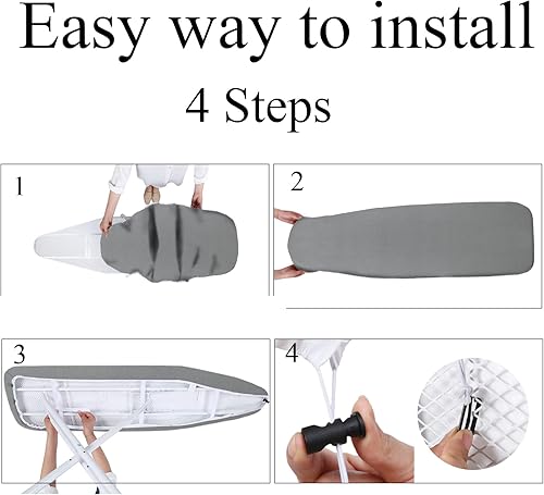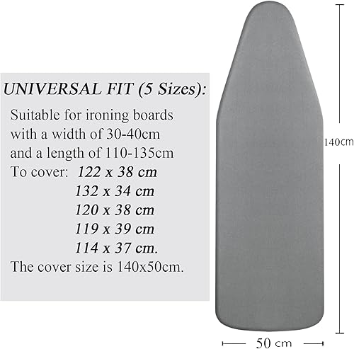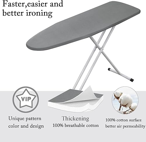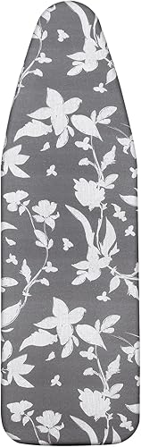 LEEWEITAS Housse de planche à repasser extra large avec dessus 100 % coton et rembourrage épais, facile à installer et résistante aux brûlures (motif floral gris, taille XXL)