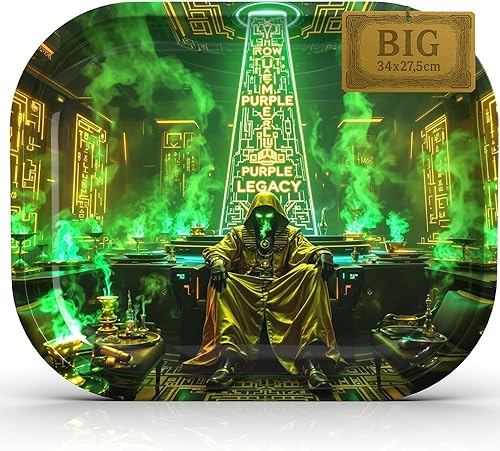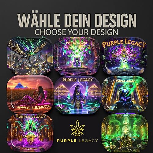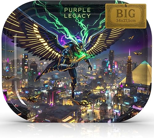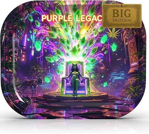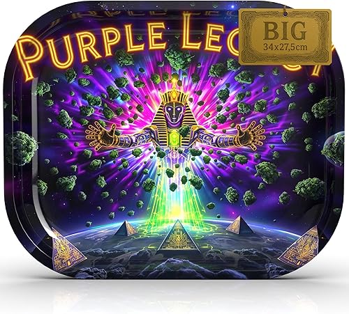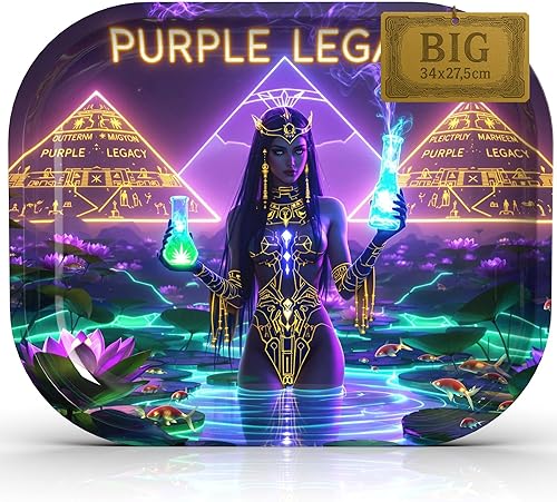 PURPLE LEGACY® Support 34 x 27,5 x 2,7 cm - Tôle métallique - Design cyberpunk égyptien - Plateau pratique avec coins arrondis (Lotus Magic Big)