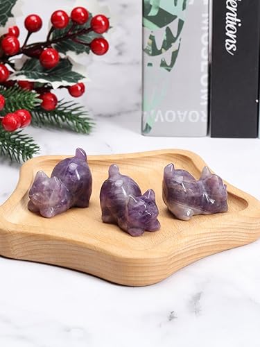 Jovivi 1.3 Pouces Bibelot Chat Etirant Petit Figurine Sculpture Pierre Naturelle Porte Bonheur Pierre Décoration de Bureau Maison et Domicile (Oeil de Tigre)
