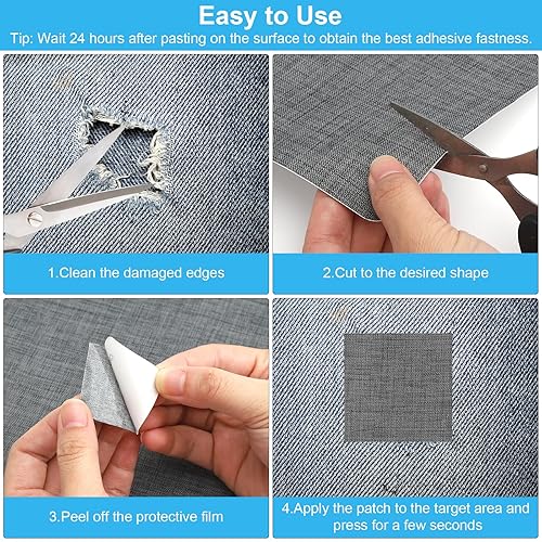 APOMOONS 4 pièces Patch Tissu Autocollant Reparation, 20x28cm Gris Foncé Patch en Tissu de Lin Auto-adhésif, Patch Réparation Canapé Tissu pour Canapé, Rembourrage, Meubles, Sièges de voiture