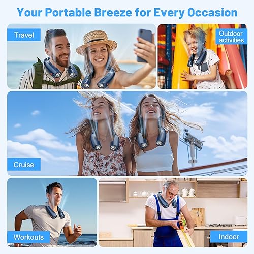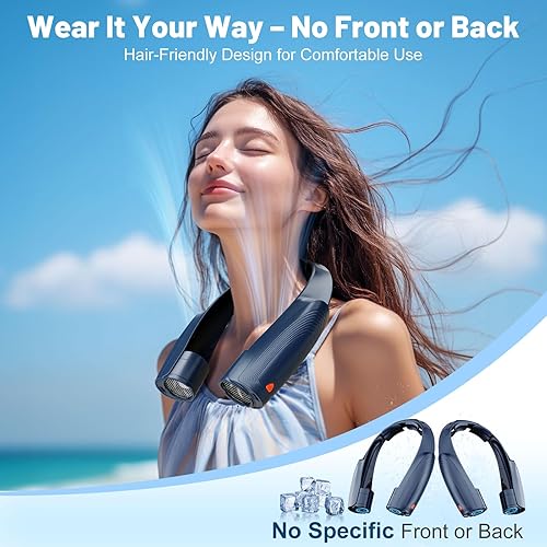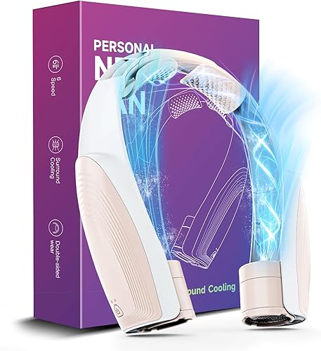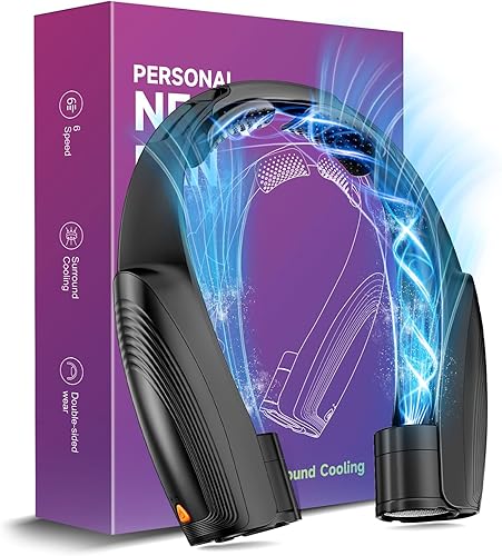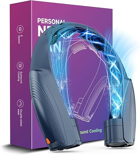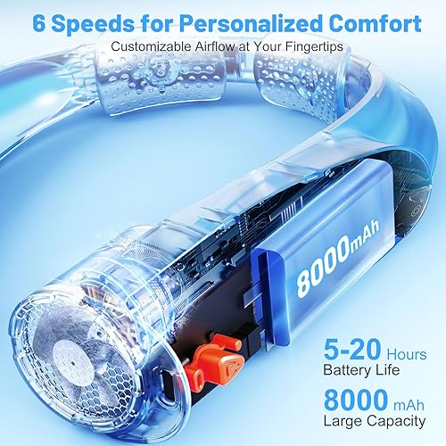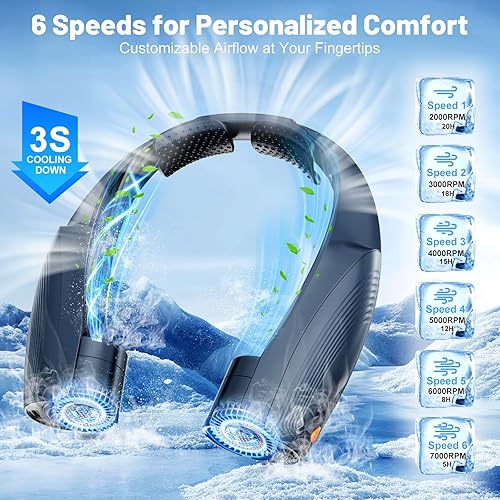 Ventilateur de Cou Portable, 6 Vitesses Ventilateur Cou Climatiseur Rechargeable 8000 mAh, 360° Cooling Ventilateur de Cou Silencieux Libres Sans Pale pour Bureau Voiture Camping Exterieur Noir