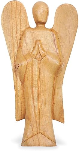 TEMPELWELT Figurine décorative ange gardien debout en bois d'hibiscus - Hauteur : 25 cm - Marron clair - Artisanat de Bali - Ange en bois priant