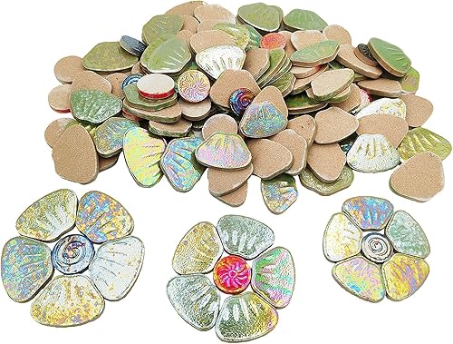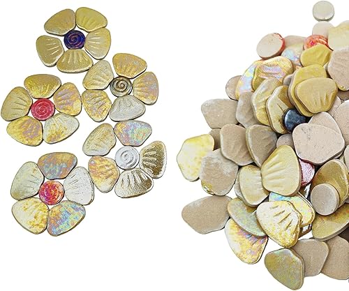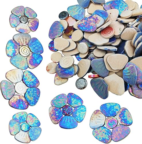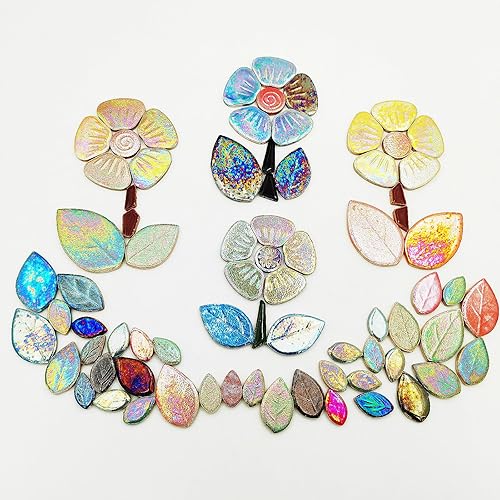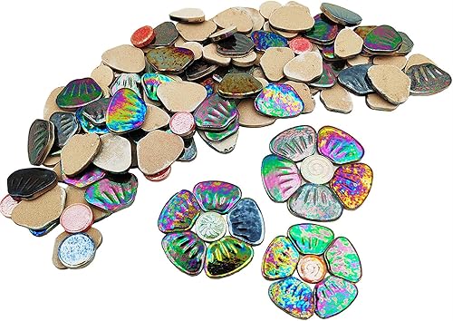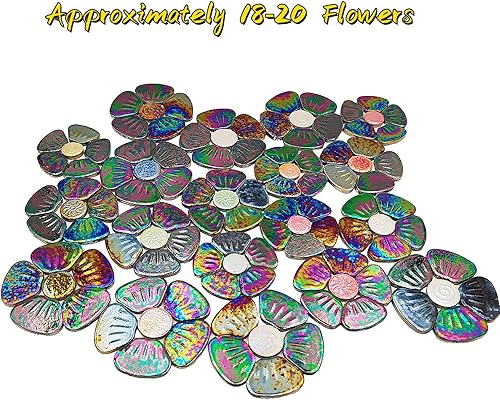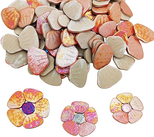 Anktily Carreaux de mosaïque en céramique irisée orange 500 g, 3 tailles, 18 à 20 fleurs, kit de bricolage pour décoration de maison et de jardin