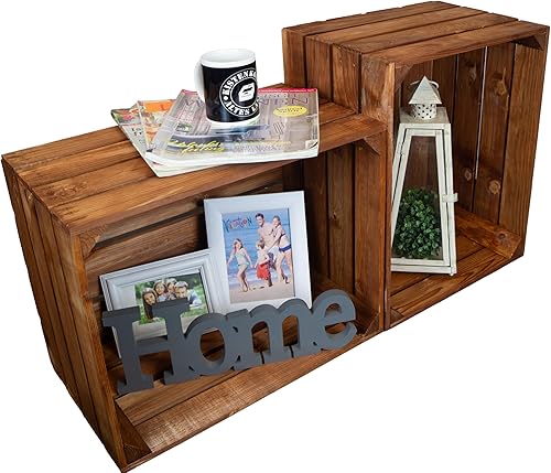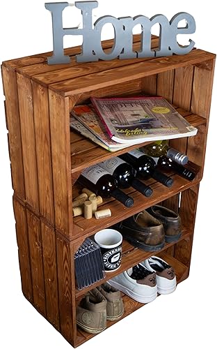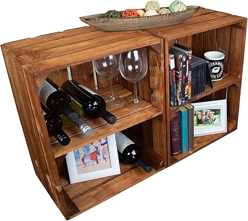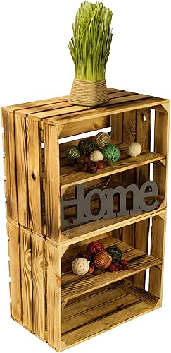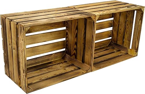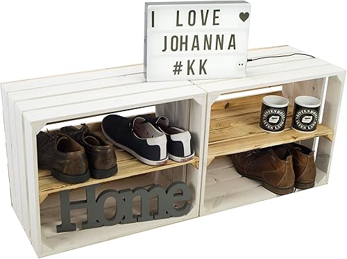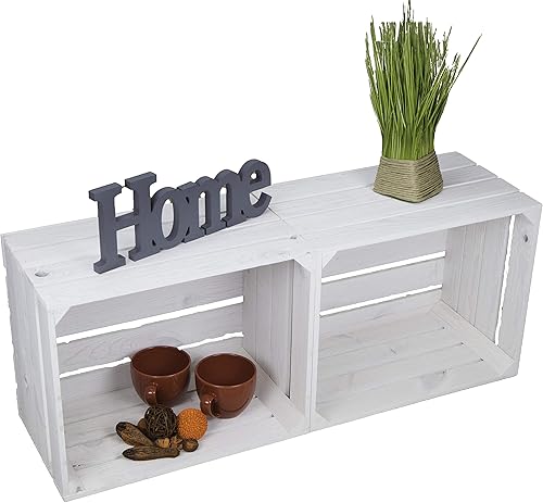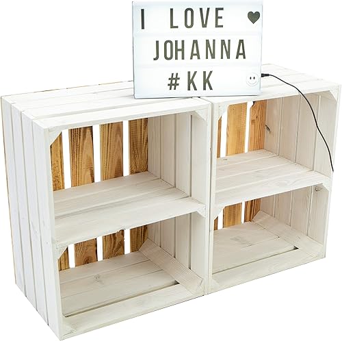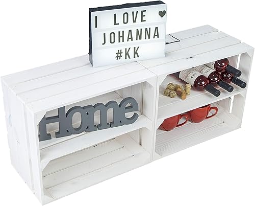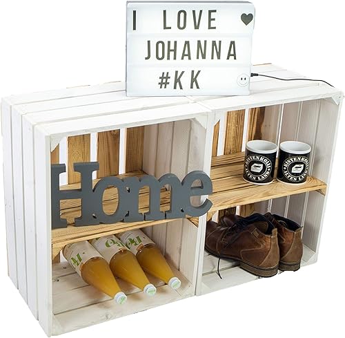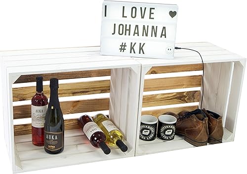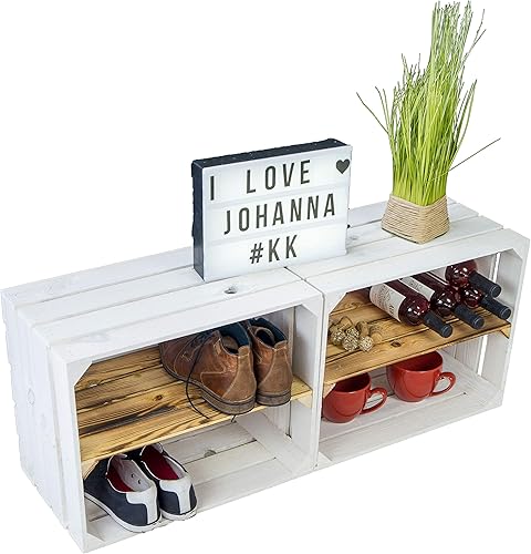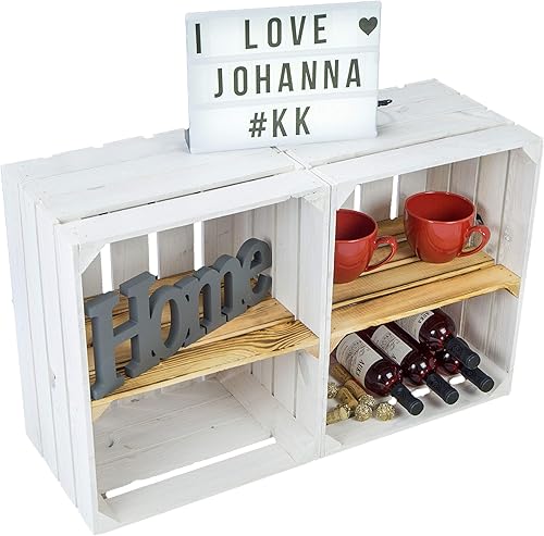 Lot de 2 caisses à fruits 'Johanna' blanches, flammées ou flammées avec fond avec planche centrale, caisses à vin, caisses de rangement, caisses à vin