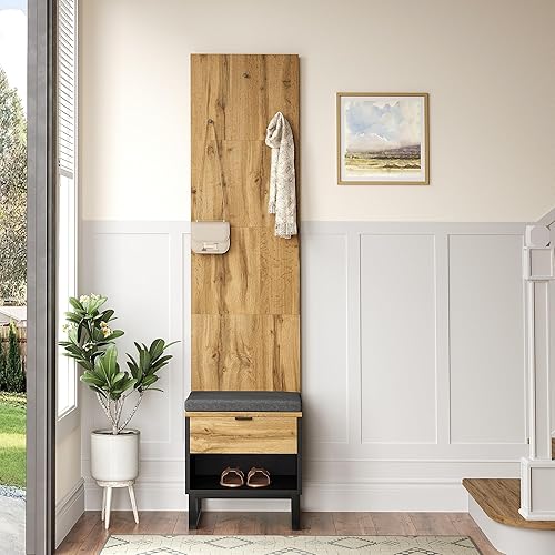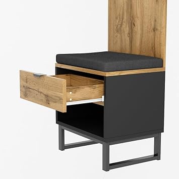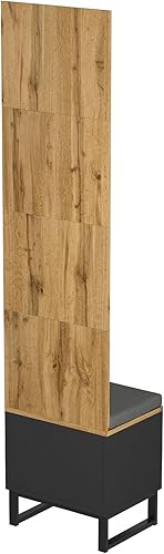 WASAGA Porte-manteau mural avec 4 patères, miroir, armoire à chaussures, avec compartiment de rangement supérieur et banc, garde-robe de couloir
