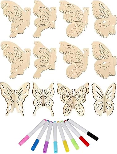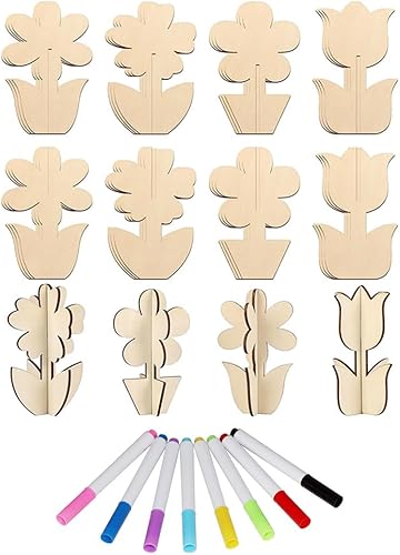 XFSRG DIY 3D Fleurs Kit de Bricolage en Bois à Peindre pour Enfants et Adultes avec 24 Disques de Bois Bruts et 8 Stylos à Base dEau pour Décorations Printanières Créatives comme (Fleur)
