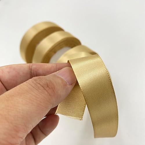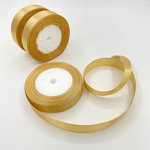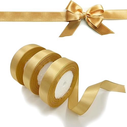 LLMtn 66 Mètres Lot de 3 Rouleaux de Ruban de Satin Doré 2 cm x 22 m pour Décoration de Cadeau de Mariage, de Baptême et d'Anniversaire
