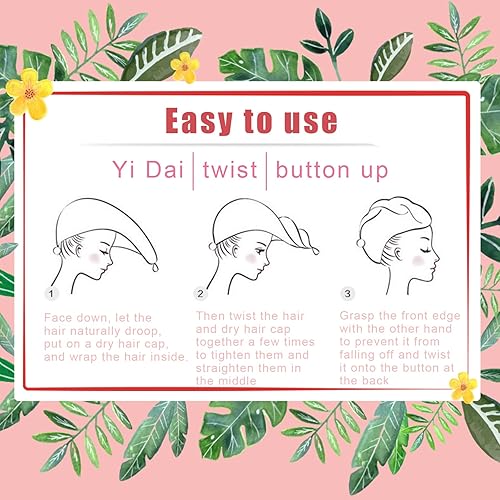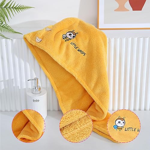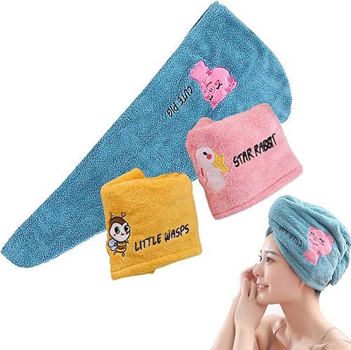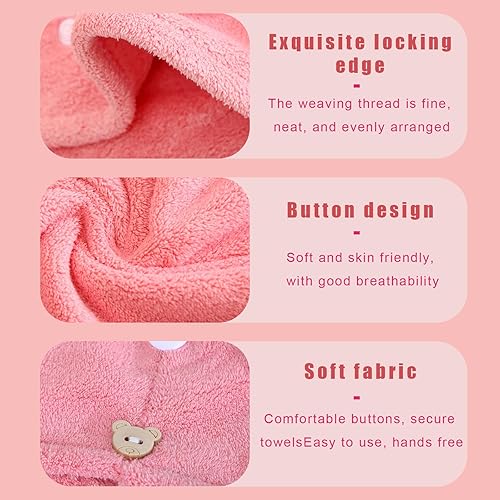 KDDULQ Lot de 3 Serviettes à Cheveux en Microfibre Super Absorbantes avec Boutons, Serviettes à Cheveux à Séchage Rapide pour Femmes, Filles, Enfants, Tous Types de Cheveux (Rose, Jaune et Bleu)
