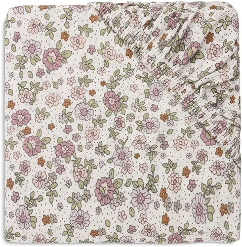 Jollein Drap-housse en jersey - Pour lit d'enfant - Fleurs rétro - 60 x 120 cm - 100% coton - Motif floral rétro