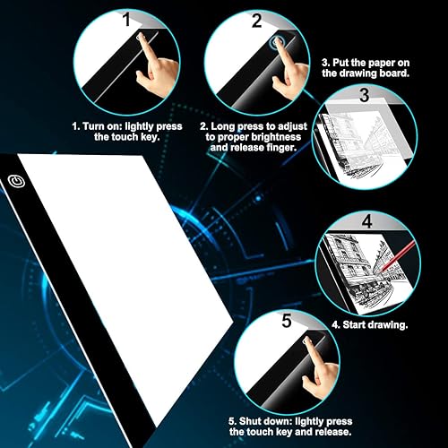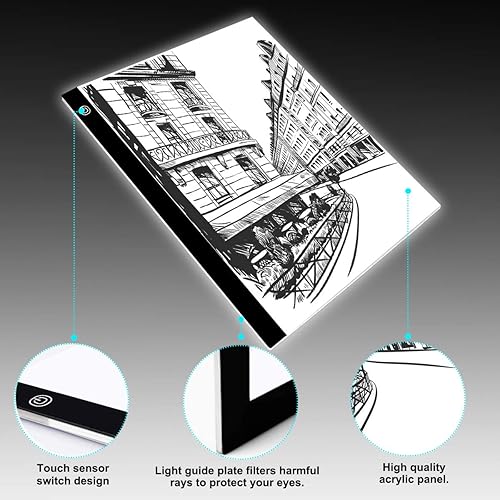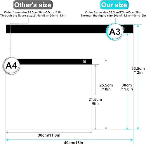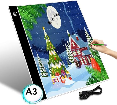 GEMITTO A3 Tablette Lumineuse, LED Table à Dessin Ultra Mince Portable Copie Board Écriture, Stepless Dimming avec Câble USB, pour Esquisse ,Dessin au diamant, Broderie Animation -40x33.5x0.5cm