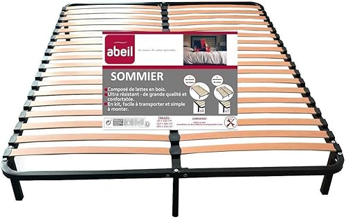 Abeil Sommier à lattes, Noir, 140 x 190 cm