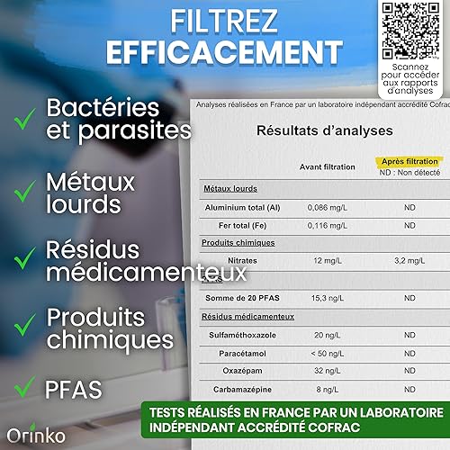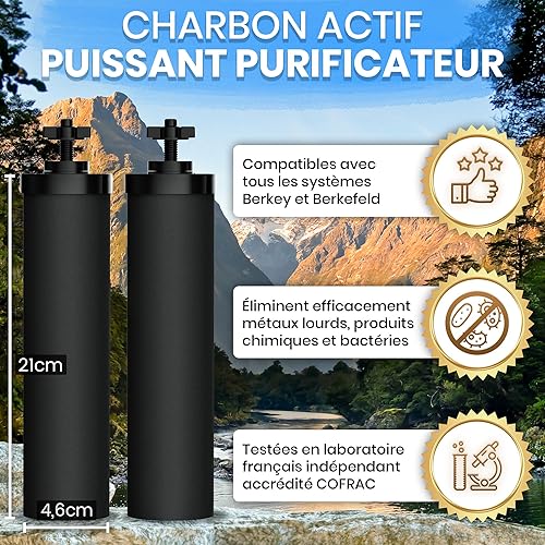 Cartouches Filtrantes pour Filtre à Eau par Gravité – Compatible avec Filtre Berkey et Berkefeld – Cartouche pour Filtre à Eau Haute Performance – Purification Efficace de l'Eau – Pack de 4