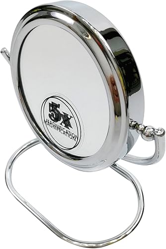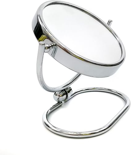 HIMRY Miroir cosmétique Double Face Pliable 20 cm, grossissement x 5, Rotatif à 360 ° Miroir cosmétique, Miroir de Table, 2 miroirs : Un côté Normal et Un côté grossissant (x 5), chromé, KXD3125-5x