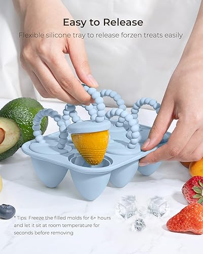 Lot de 6 moules à glace en silicone pour bébé - Avec tiges en silicone - Mini moules à glace pour bébé/tout-petits/enfants - Sans BPA - Convient à un usage alimentaire - Facile à nettoyer - Idéal pour