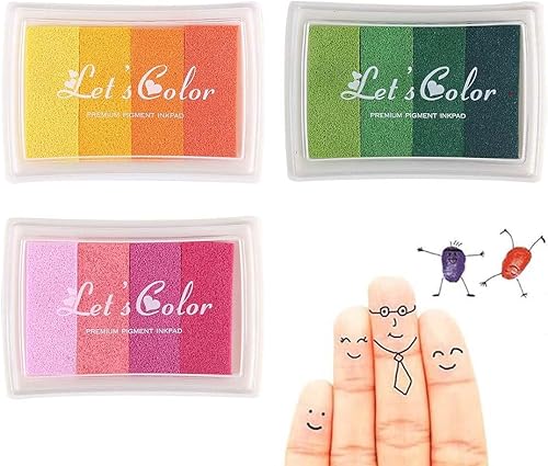 Coussins Encreurs, 3Couleurs Encre Tampon, Tampons Encreurs Enfants Encre Doigt Multicolores Non Toxique Lavable pour Peinture au Doigt Scrapbooking Artisanat Craft Stamps tampon encreur encre tampon