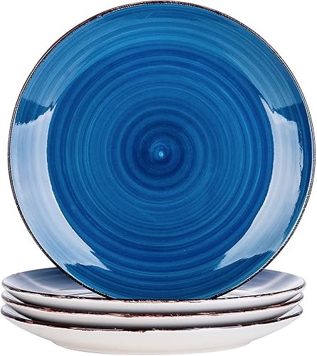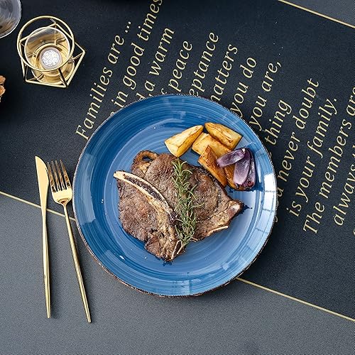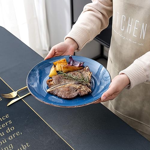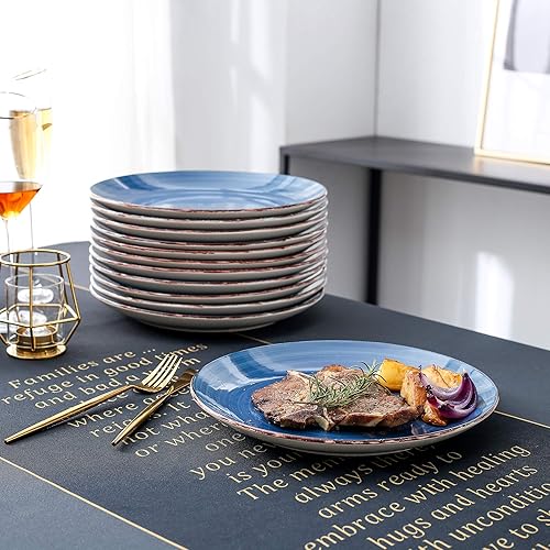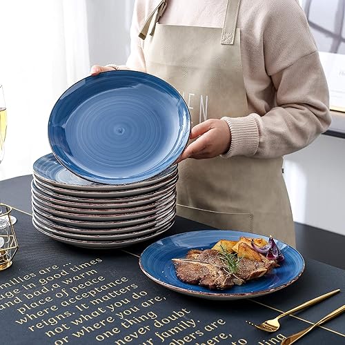 vancasso Bella Blue Lot de 12 grandes assiettes peintes à la main aspect rustique 27 cm pour dîner/steak/plat principal, résistantes aux rayures