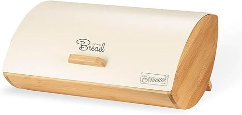 Feel Maestro MR-1775-IVORY Boîte à pain Ivoire Bois Métal Bambou 25 x 13,3 x 36,5 cm