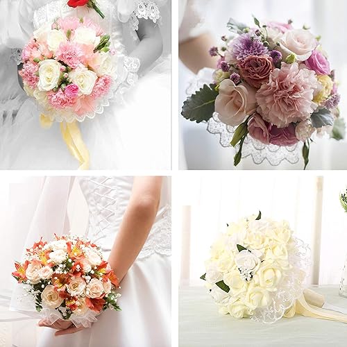 6 Pcs Collier Bouquet Dentelle pour Support Bouquet Mariage, Blanc Mariage Bouquet Dentelle Décoration Porte Bouquets DIY Dentelle Bouquet Mariée (Blanc)