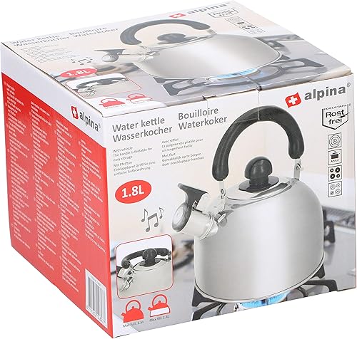 alpina Bouilloire - 1,8 L - Acier Inoxydable - Induction et Gaz - avec Flûte - Ø 19CM - Argent