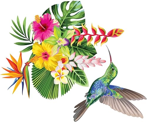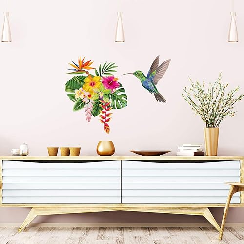 Sticker Mural Fleur Tropicale et Colibri - Décoration mural Salon et Chambre - Autocollant mural Oiseaux - 20x25CM