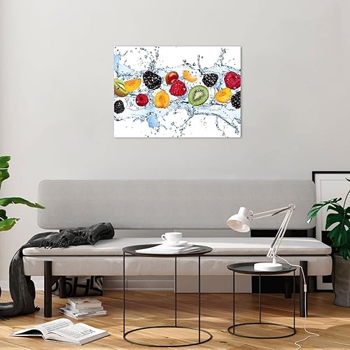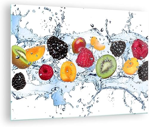 Moderne Impression sur Verre Eau fruits frais nourriture Image Tableau en Verre Decoration Murale 70x50cm Deco Cadre Salon Chambre Cuisine Horizontal Petit Tableaux Decoratifs Muraux Art GAA70x50-2675