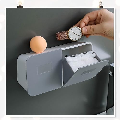 leyomgamz Distributeur de cotons-tiges en plastique - Organiseur de maquillage - Rangement mural à rabat - Rangement multifonction avec couvercle pour boules de coton, écouvillons, Q Tips