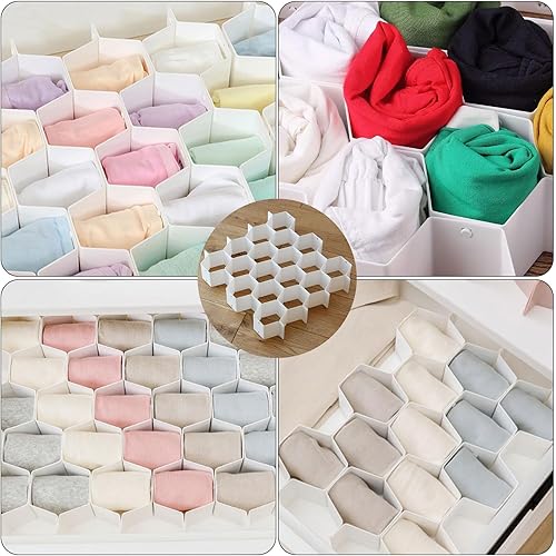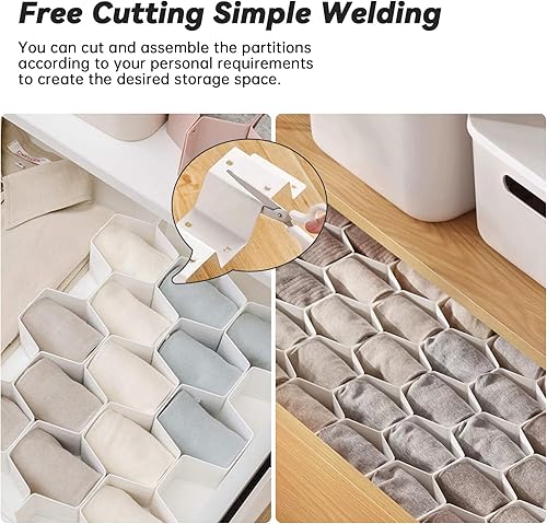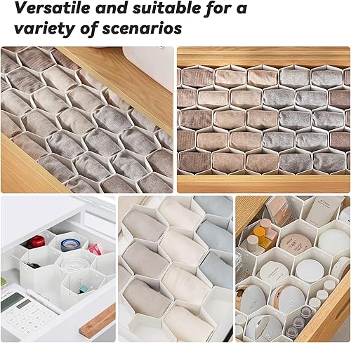 XPAPOV Lot de 8 séparateurs de tiroir en nid d'abeille pour sous-vêtements, séparateur réglable pour chaussettes, bijoux, ceintures, cravates, vêtements, maquillage, articles de bureau (blanc)