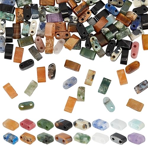 PH PandaHall 160pcs 16 Style Perles Demi Tilas en Pierres Précieuses Naturelles Perles Plates à 2 trous Perles Rectangulaires en Vrac pour la Fabrication de Collier Boucles D'Oreilles Bracelet Bijoux