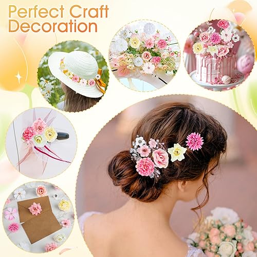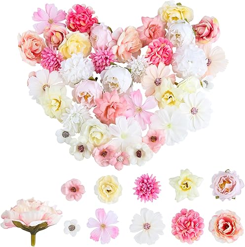 40 Pièces Fleurs Artificielles Têtes, Fausse Fleur Decoration avec 10 Styles, Fausses Fleurs Petites Fleurs en Soie, Petite Fleur Artificielle Decoration pour Le Mariage Home DIY Crafts Scrapbooking