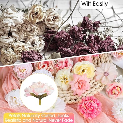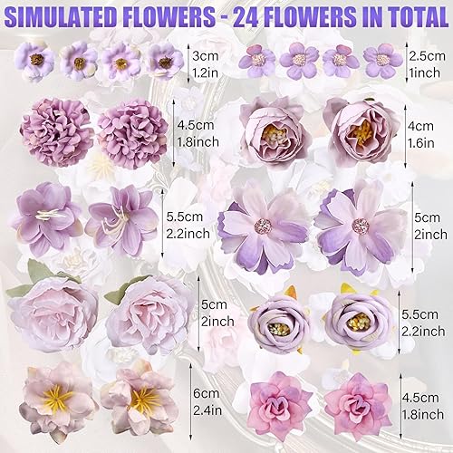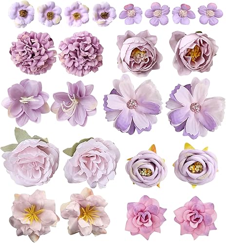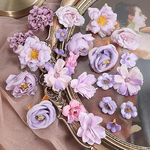 DKDDSSS 24 Pieces Fleurs Artificielles, Têtes de Fleurs, Fausses Fleurs, Fausse Fleur Decoration, Têtes de Fleurs Artificielles, pour DIY Bouquet de Mariage, Composition Florale, Décoration Intérieure