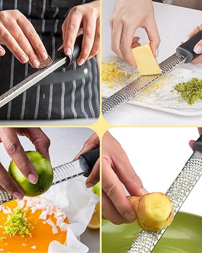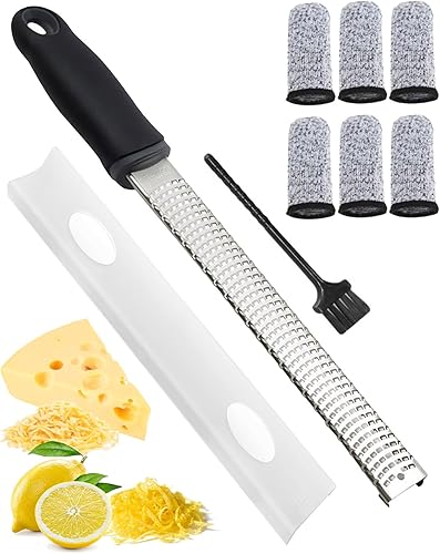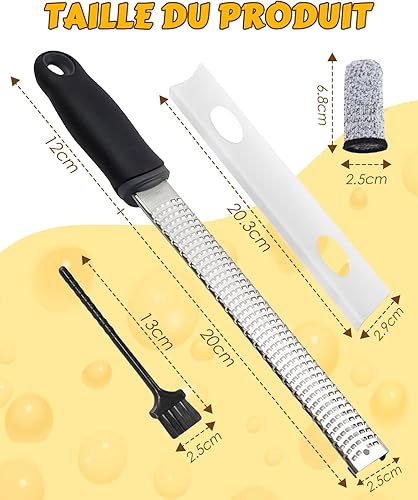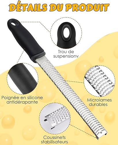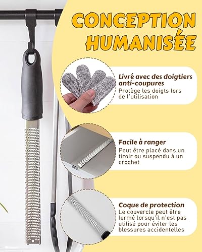 Enkifun Zesteur, Rapeuse Fromage Zesteur Agrumes Nettoyage Facile au Lave Vaisselle Fromage Parmesan Chocolat Fruits Légumes Brosse Housse de Sécurité