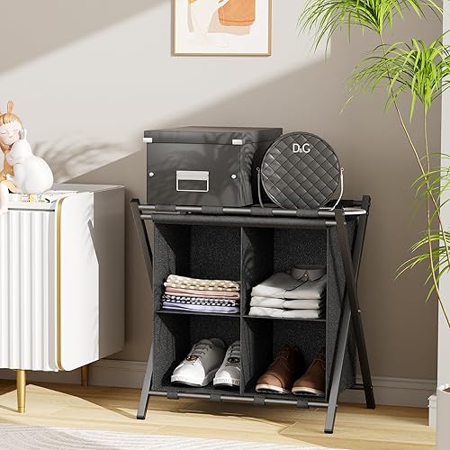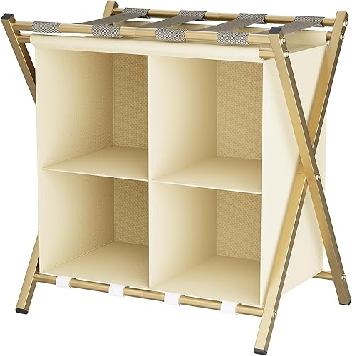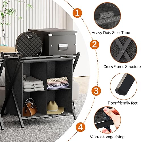 Huhote Porte-bagages avec rangement, support de valise pliable en métal, porte-bagages portable pour chambre à coucher, valise à 2 niveaux, support de rangement pour la maison, la chambre à coucher, 1