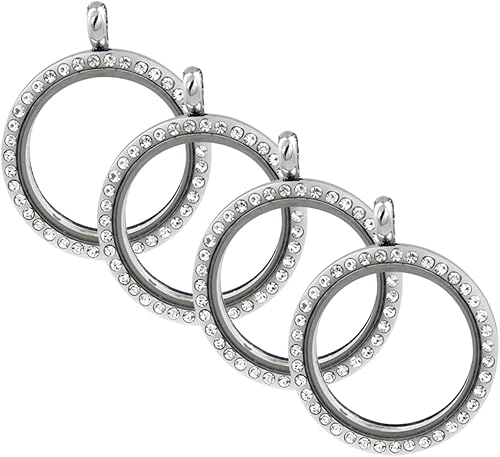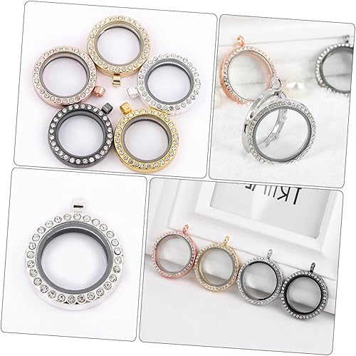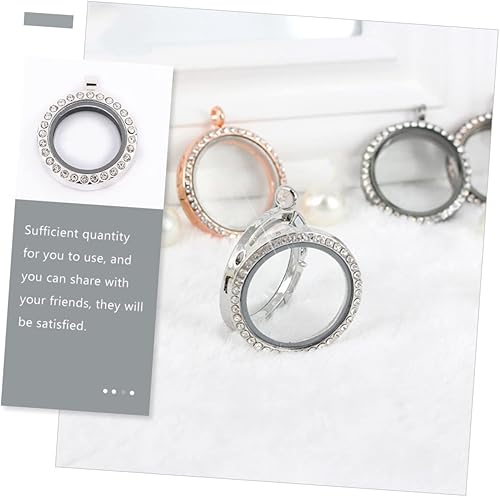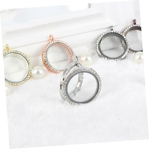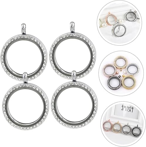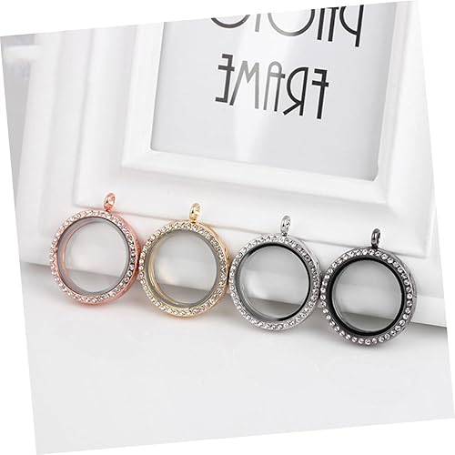 Angoily 4pièces Pendentifs Photo Rond Alliage Avec Décor Rhinestone Médaillons Ouvrables Pour Diy Et Bijoux