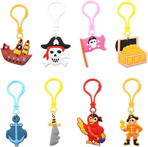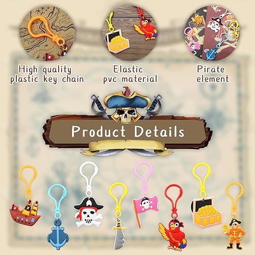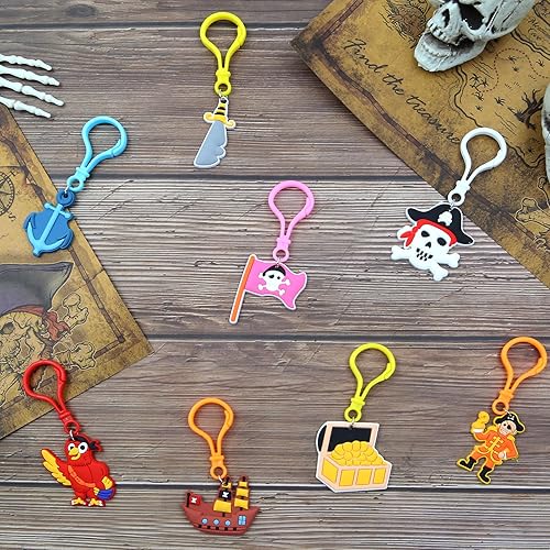 Geluode Lot de 8 porte-clés pirates, perroquet et trésor pour fête d'anniversaire, sac à dos, sac à main, décoration de clé de voiture, porte-clés pour garçons et filles