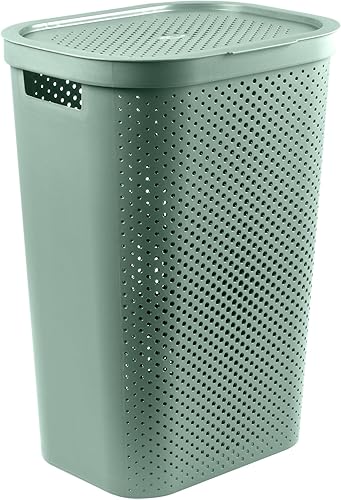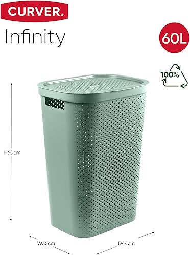 CURVER Coffre à Linge Infinity 60L - Bac à Linge avec couvercle et aération - Poignées Ergonomiques - Pour Salle de Bain ou Buanderie - 70% recyclé - 43,7 x 35,1 x 60,2 cm - Nouveau Vert