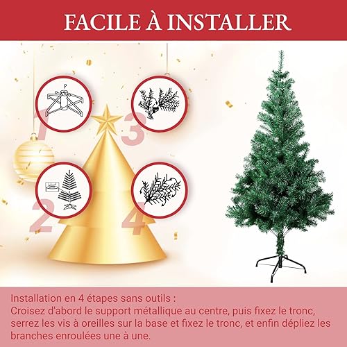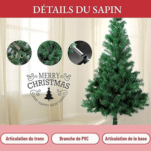 Gotoll Sapin de Noël Artificiel 180 cm Sapin de Noël Arbre Réutilisable y Compris Support en Métal Ignifuge - Vert