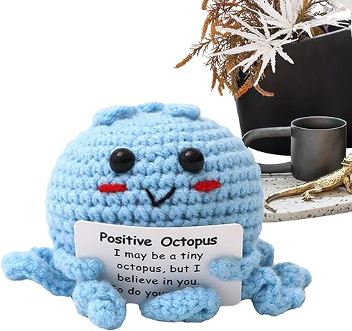 Positive Octopus – Poupée pieuvre positive tricotée avec carte d'encouragement, décorations tissées à la main, support émotionnel pour amis