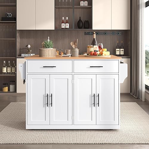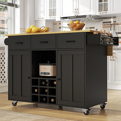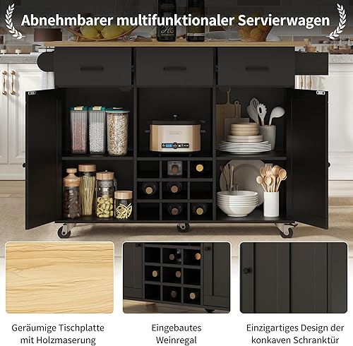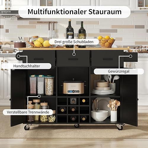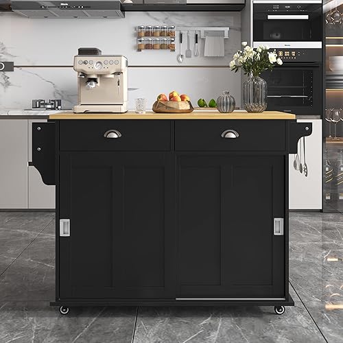 Merax Desserte Îlot de Cuisine Mobile avec Plan de Travail Rabattable, Armoire sur Roulettes, 2 Tiroirs et Porte Réglable, 112 x 40 (70) x 94 cm, Noir