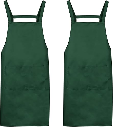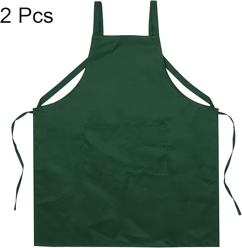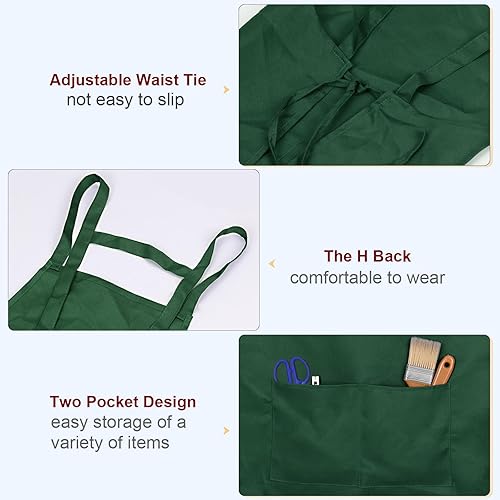 QUARKZMAN 2pcs H Style Tablier Cuisine Cuisine Tabliers art Peinture Tablier avec 2 Poches pour Maison Cuisine Restaurant Artisanat Jardin Cuisine, Foncé Vert