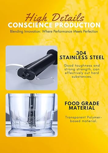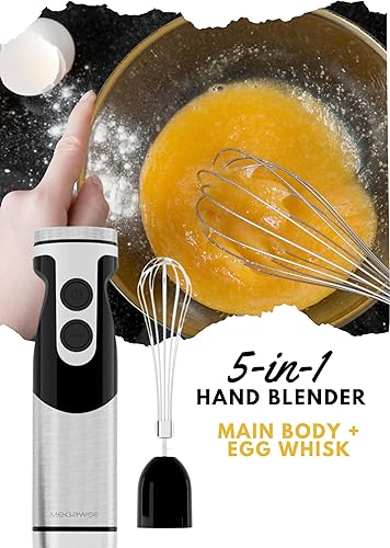 MEGAWISE Mixeur plongeant 5 en 1 puissant mixeur plongeant de 400 W avec vitesse variable et axe en acier inoxydable – Comprend hachoir, fouet, mousseur à lait et verre doseur (Noir)