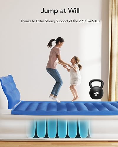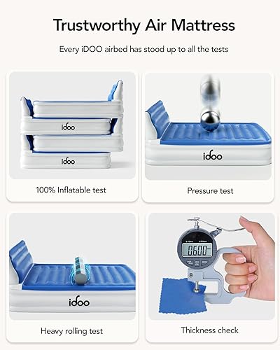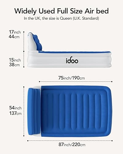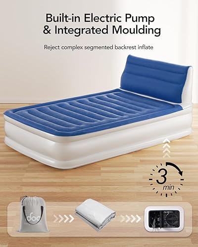 iDOO Lit pneumatique avec tête de lit, Matelas Gonflable Double avec Pompe électrique intégrée, lit Gonflable Confortable, Matelas pneumatique Auto-gonflant pour invités