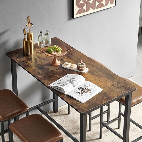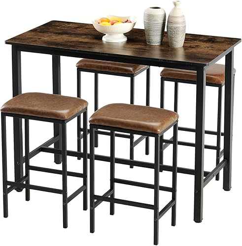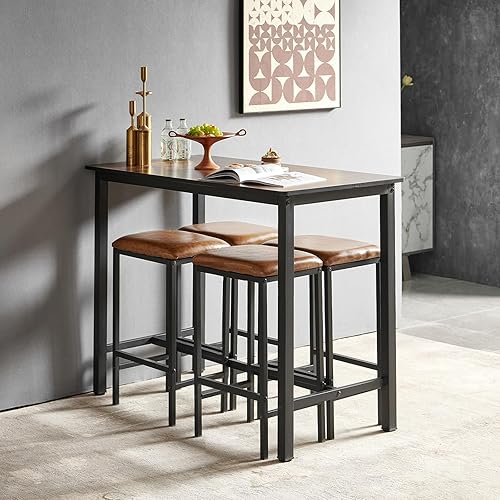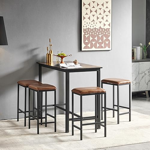ReseeZac Lot de 5 chaises de Salle à Manger, avec 4 tabourets de Bar rembourrés, pour Cuisine et Salle à Manger, Cadre en métal, Marron