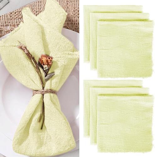 LEKEFETO Élégantes Serviettes en Tissu: 6 Pièces Coton Pur, Serviettes de Dîner, Pliables, Réutilisables, pour Mariages, Repas Familiaux, Décoration de Table (42X42cm, Jaune Pâle)