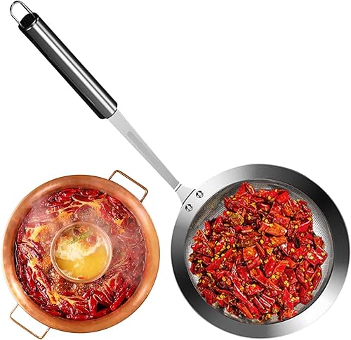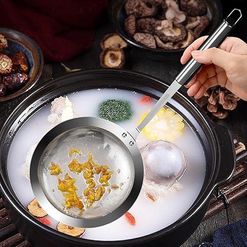 Écumoire à mailles fines, écumoire en acier inoxydable, passoire à long manche, passoire à huile de cuisson, outil de friture, passoire en maille de qualité alimentaire, tamis en métal pour la maison