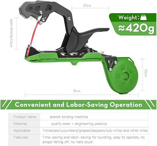 worien Machine à reliure pour plantes avec 10000 agrafes 10 rouleaux de ruban vert et noir en métal et plastique pour tomates, légumes de jardin.