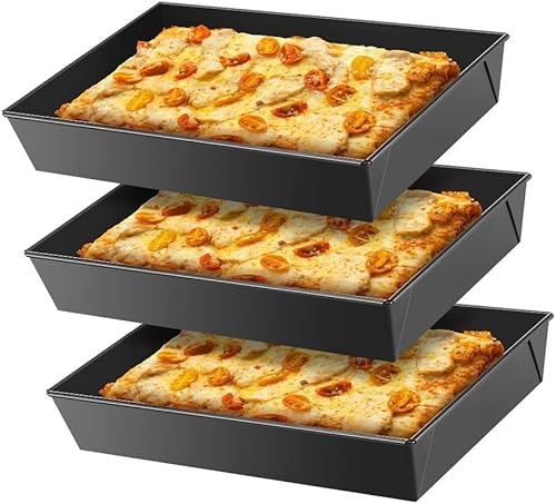 CKryzillix Lot de 3 plaques à pizza rectangulaires rigides et profondes de style sicilien - 25,4 x 35,6 x 6,9 cm