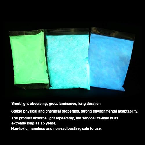 ZJchao Lot de 3 pigments fluorescents professionnels de 100 g, poudre fluorescente, phosphorescent et non toxique - Pigments sombres - Lumières néon Stronzio Aluminato dans des pigments sombres